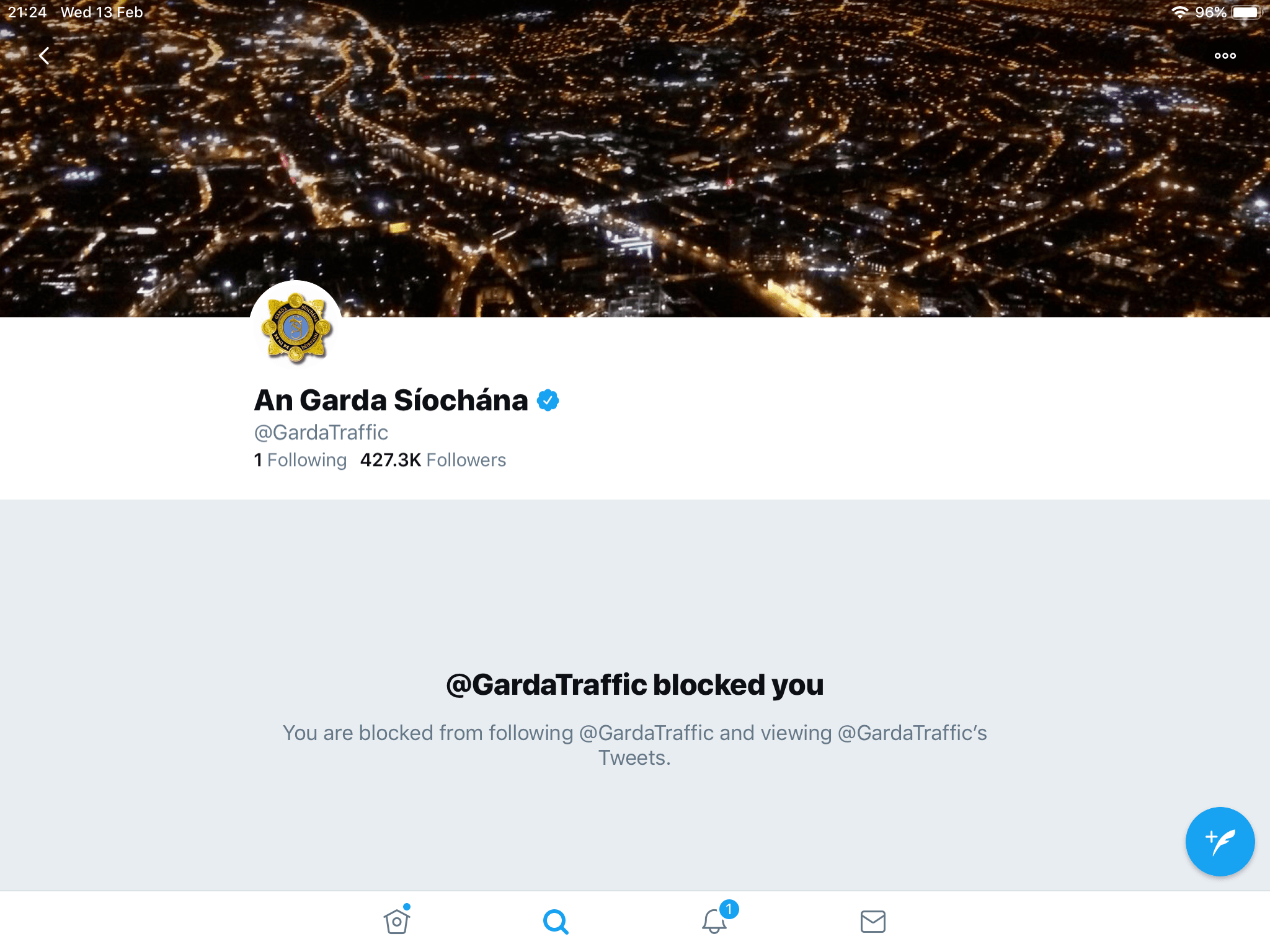 As mentioned above, I was blocked by the @GardaTraffic twitter account as I was posting pictures of cars breaking the law to twitter. I had asked in my e-mail to the Traffic Corps as to how they would like to receive these reports, and received no answer. Twitter was the next avenue open to me. I didn’t stop.