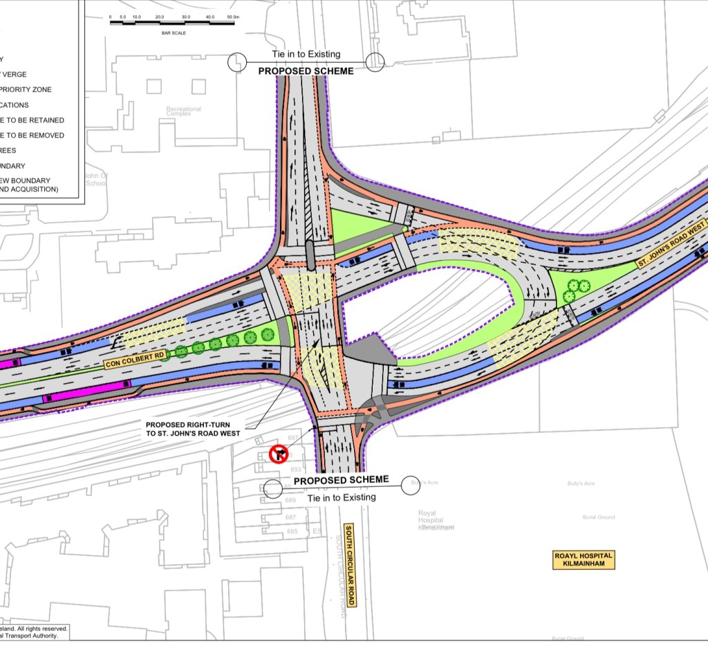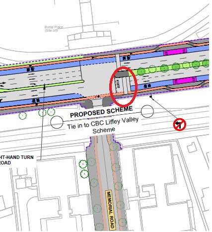 This would also mean that only one lane of traffic would be needed exiting Islandbridge Southbound towards the junction. This would also reduce conflict in traffic at the Kilmainham Gaol junction where motorists inadvertently find themselves in the right turn lane and have to merge back in with the southbound traffic.