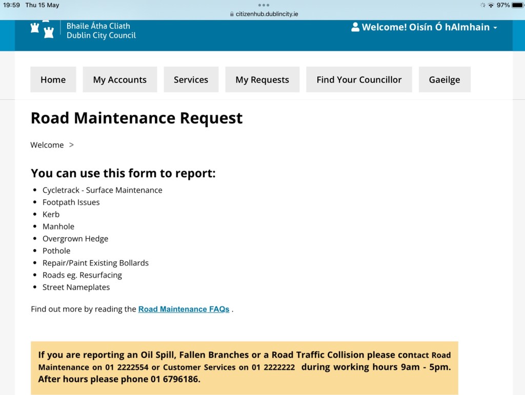 I haven’t been able to find how you can get service requests looked at in Fingal, where I commute to work some days every week, and I don’t know much about other areas, but if you do, or if you have any handy tips, please use the comments field below. Together, we can make our cycling infrastructure safer so that it’s easier for more people to get on their bikes!